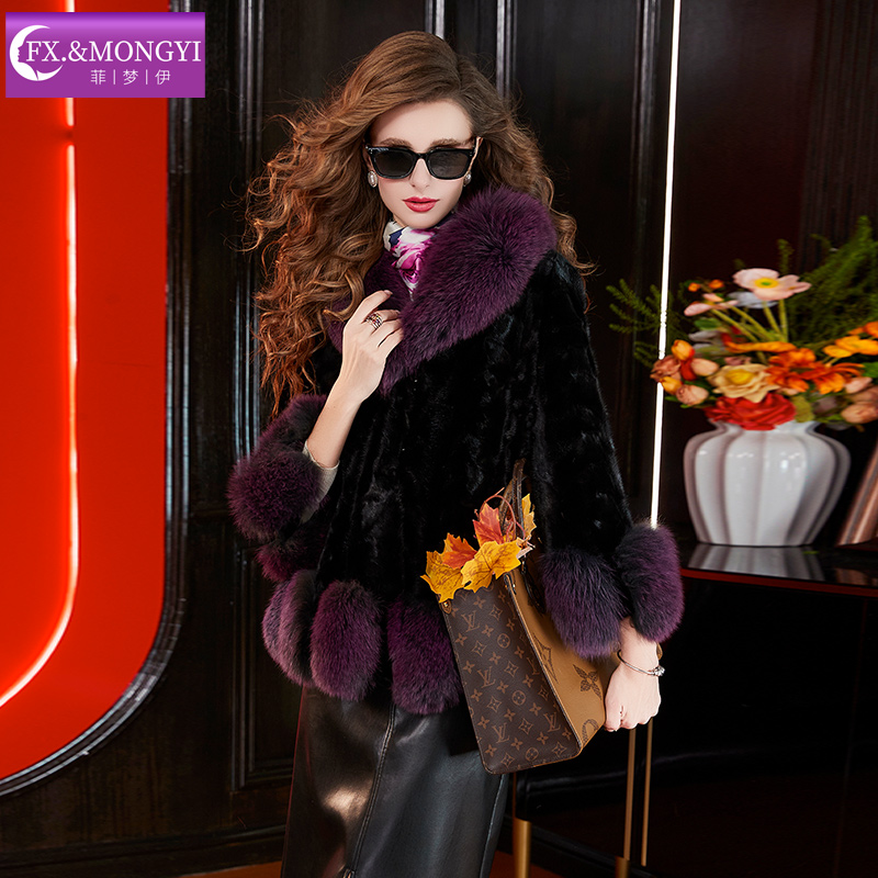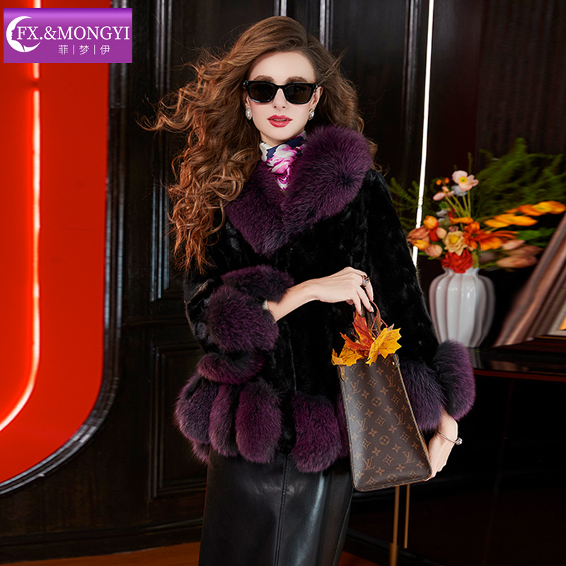 菲梦伊真毛领水貂毛整貂皮草外套女冬季 高档大牌贵妇名媛加厚大衣