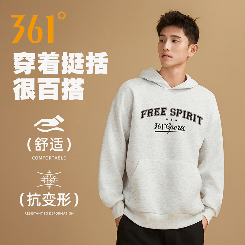 长袖 361运动卫衣男2025秋季 男装 加绒套头衫 男生运动服 圆领男士