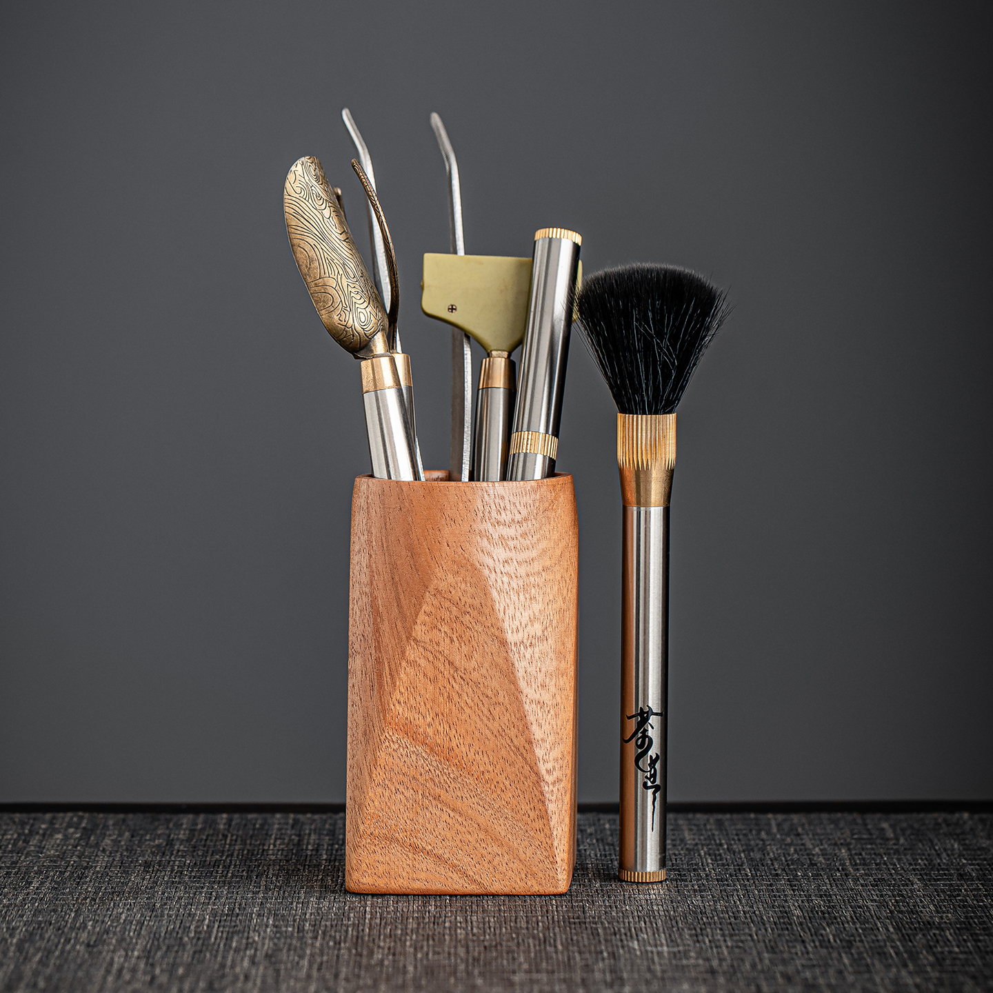 胡桃木方边茶道六君子家用高档茶针茶夹杯垫泡茶工具配件2025新款