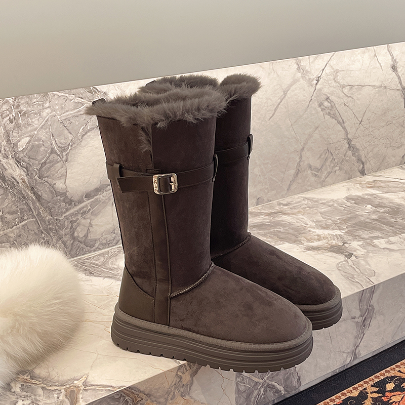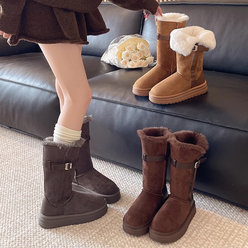 加绒保暖毛毛棉鞋 冬季 子外穿 中筒厚底防滑2025新款 冬天雪地靴女款
