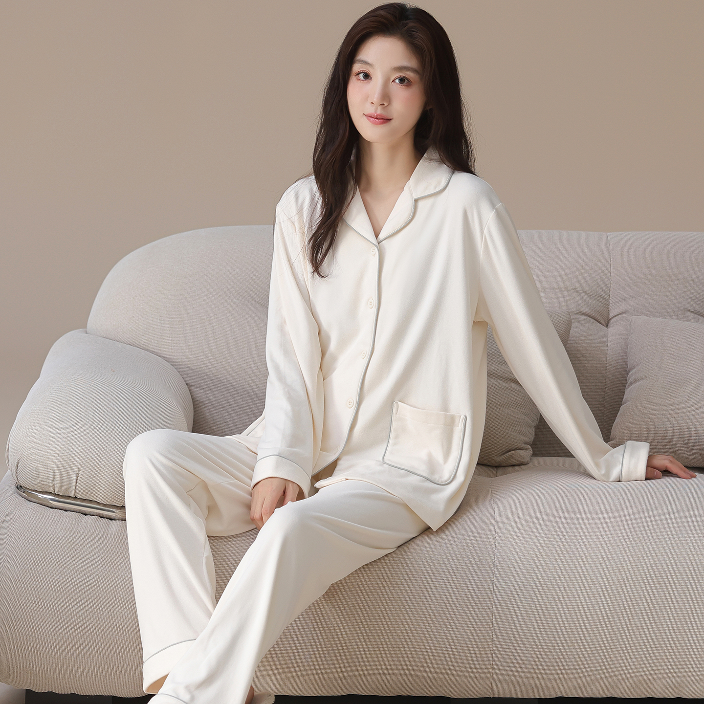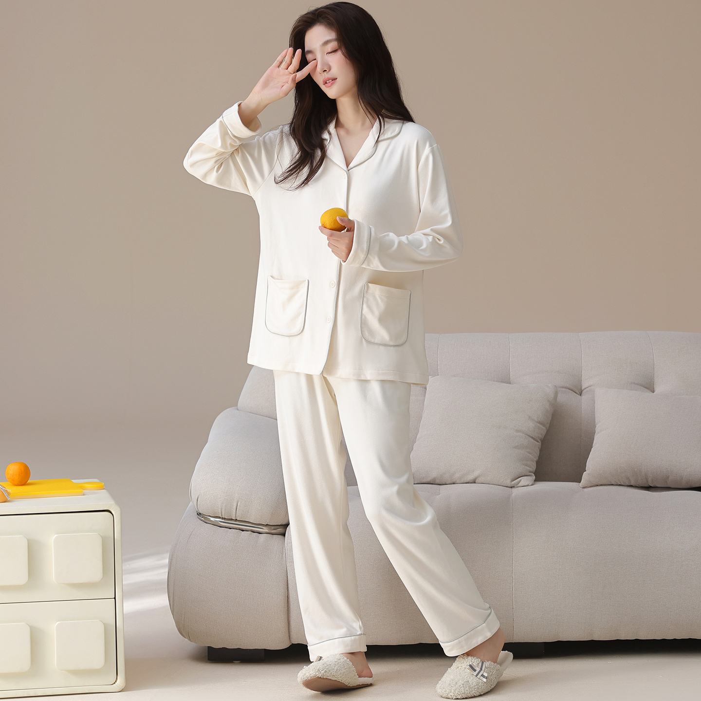 休闲风家居服 冬天舒适开衫 宜而爽可外穿保暖磨毛德绒女士长袖 长裤