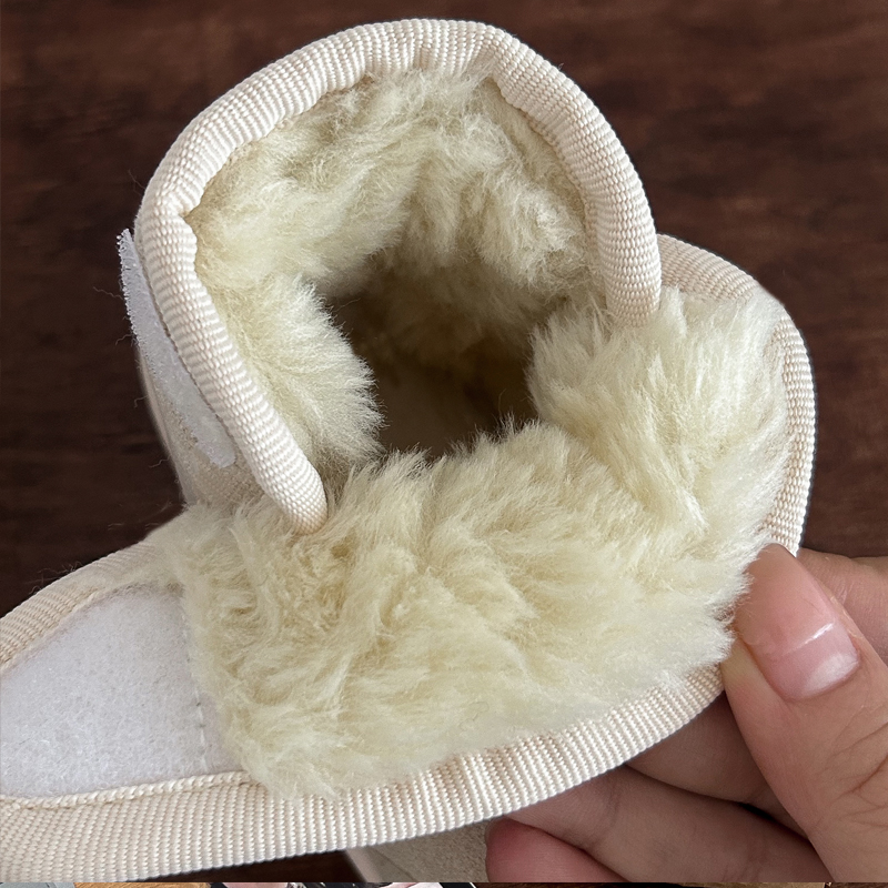 宝宝雪地靴冬季 防水 加绒加厚儿童靴子短筒软底魔术贴纯色保暖棉鞋