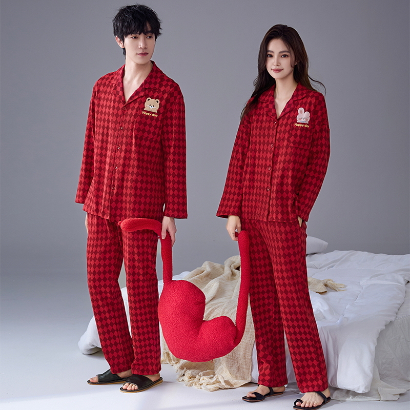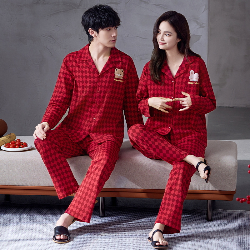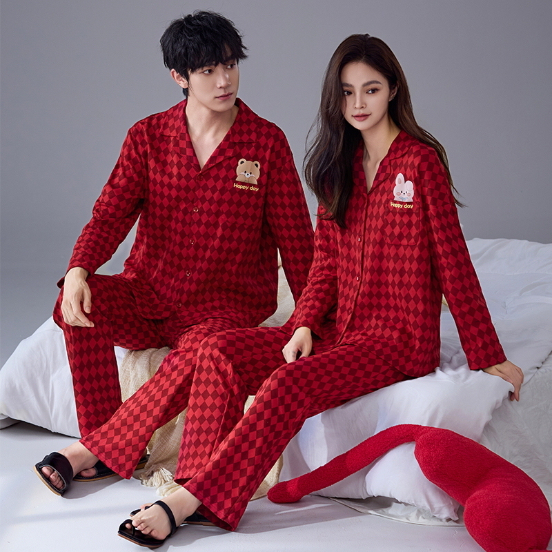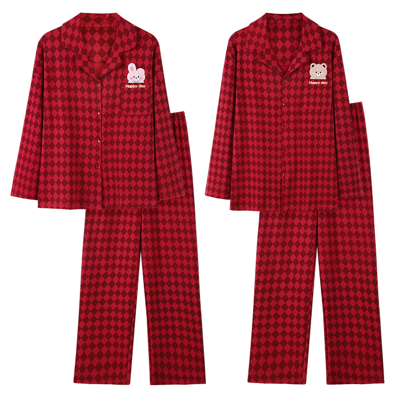 男红色本命年家居服 冰丝长袖 乐姿梦睡衣结婚新婚情侣套装 女春秋季