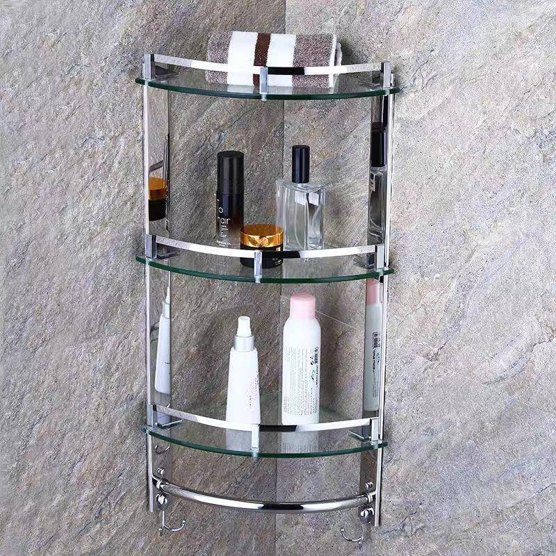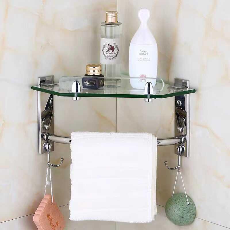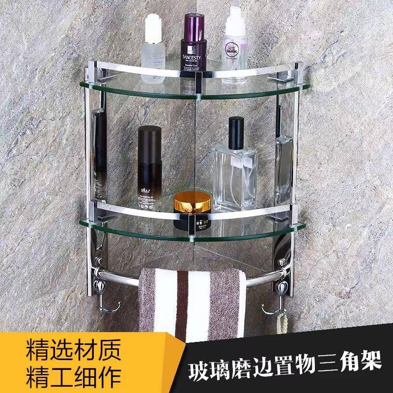 加厚不锈钢三角架厕所浴室玻璃置物架壁挂卫生间转角架角篮网篮