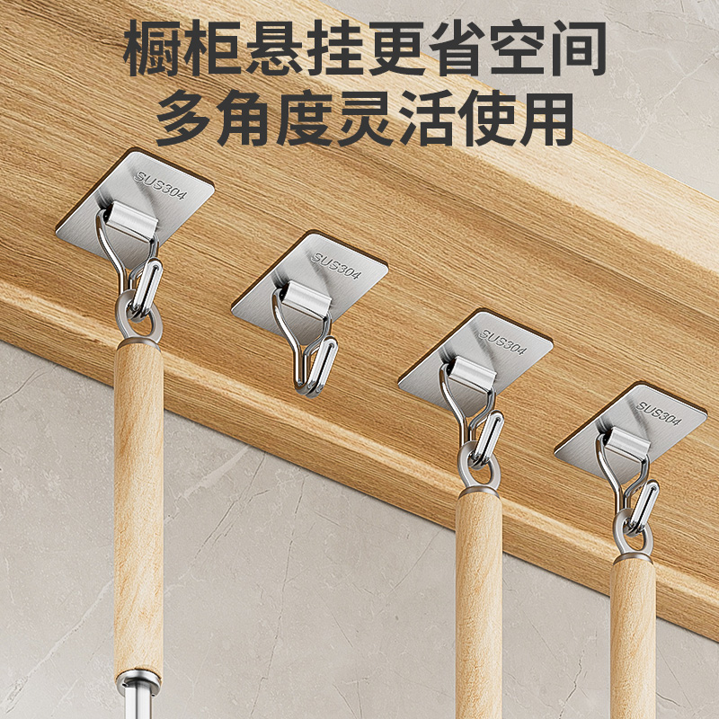 不锈钢挂钩免打孔强力承重粘胶门后挂衣钩子厨房粘钩浴室墙上收纳