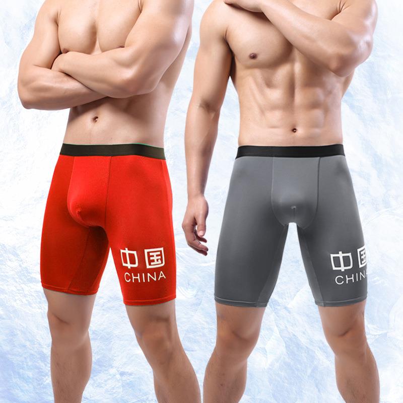 速干专业运动加长平角裤 夏季 超薄跑步防磨腿紧身长款 男士 冰丝内裤