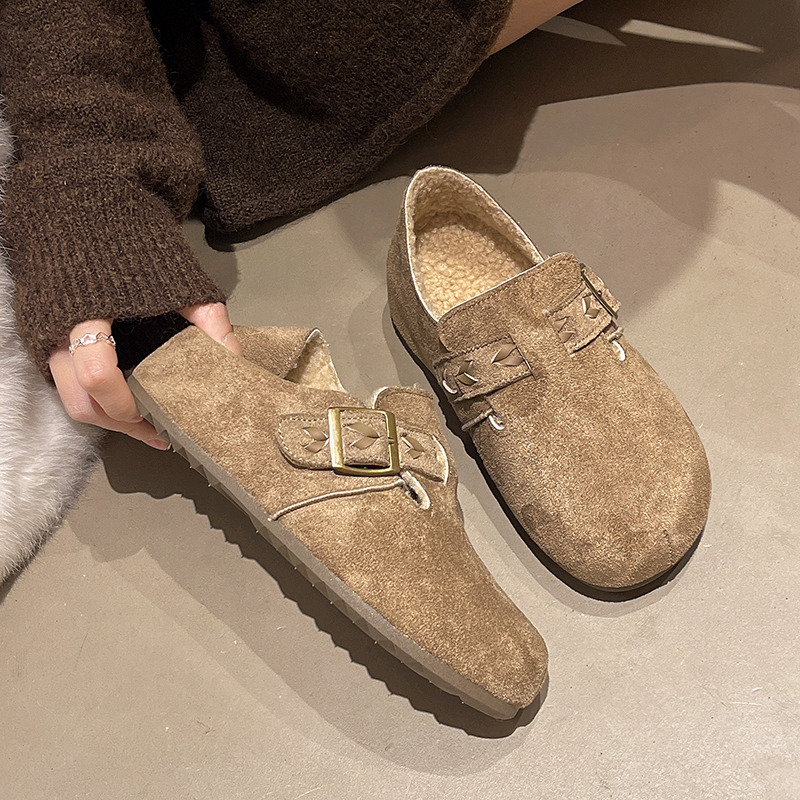 女款 毛毛鞋 2025秋冬新款 豆豆鞋 雪地靴 东北棉鞋 加绒全包复古勃肯鞋