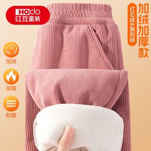 男童灯芯绒长裤 裤 女童加绒保暖运动裤 男孩冬季 子潮 秋冬款 红豆童装