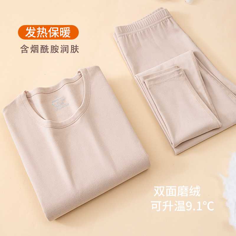 冬 女打底纯色棉毛衫 荭豆保暖内衣女加厚加绒套装 德绒发热秋衣秋裤