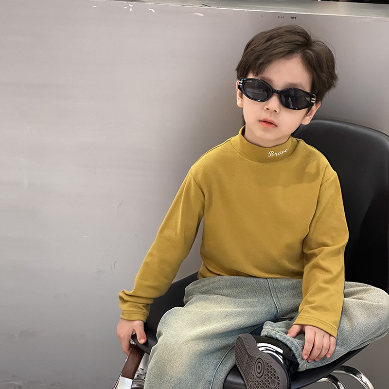 儿童打底衫 黑色体恤德绒t恤保暖德绒打底 半高领男童内搭春秋冬款