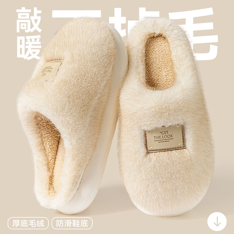 毛毛棉拖鞋 加厚棉拖鞋 防滑保暖室内居家情侣款 秋冬季 女士2025新款