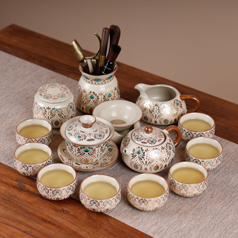 礼盒装 新款 高档功夫茶具套装 景德镇官方陶瓷浮雕山水三才盖碗中式