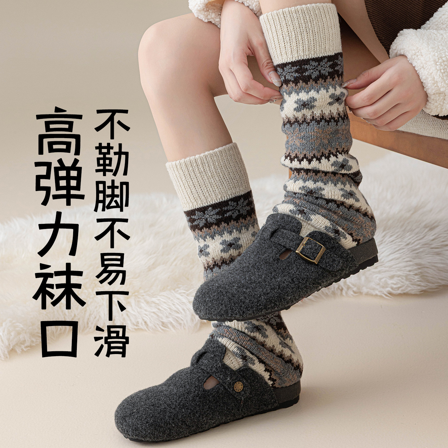 堆堆袜长筒袜女款 长袜子配长靴小腿袜jk白色纯棉靴子春秋羊毛棉袜