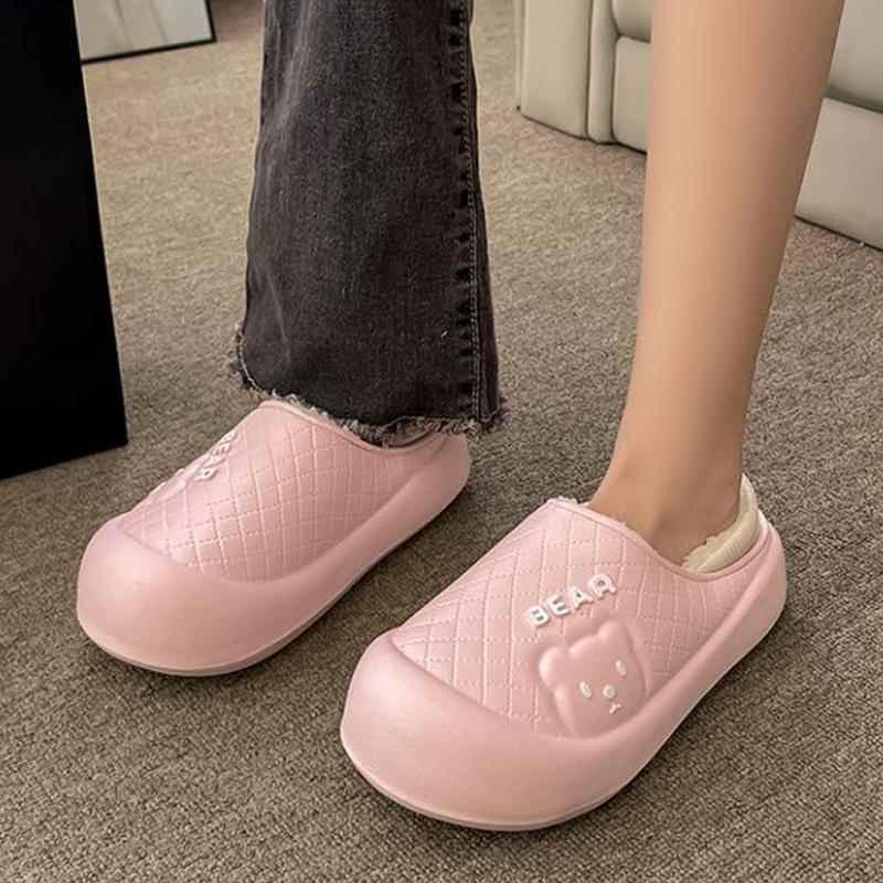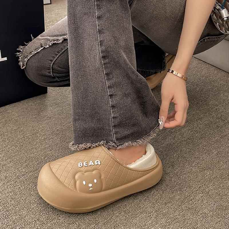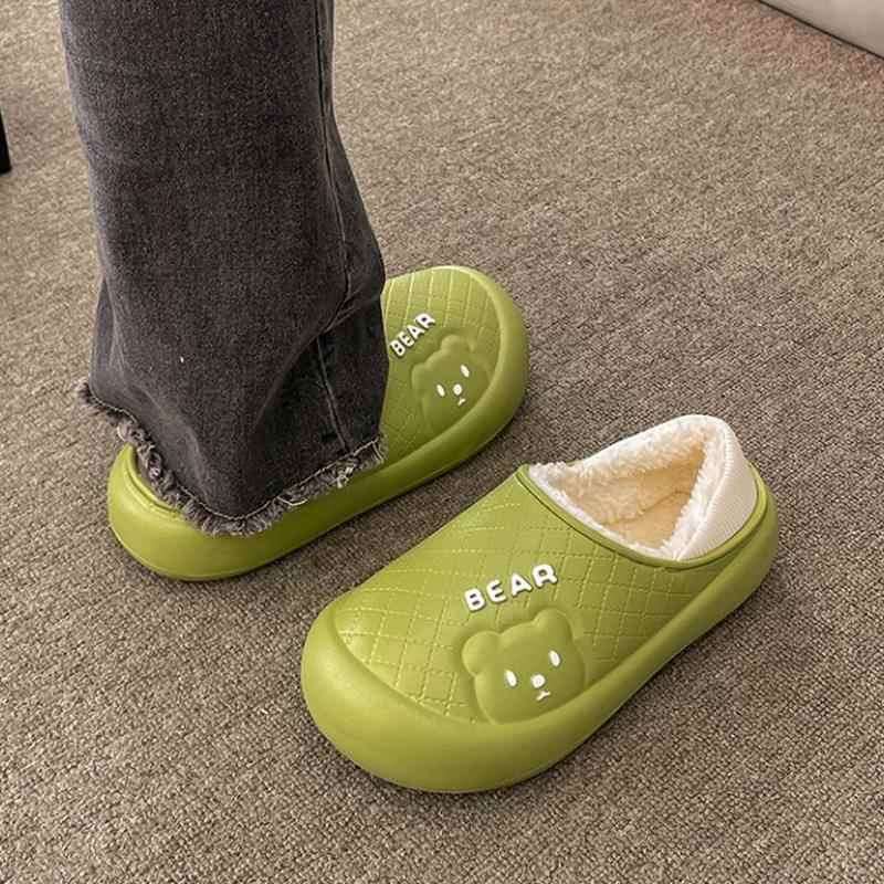 情侣室内加绒保暖外穿棉鞋 包跟棉拖鞋 防水厚底毛毛拖鞋 新款 秋冬季