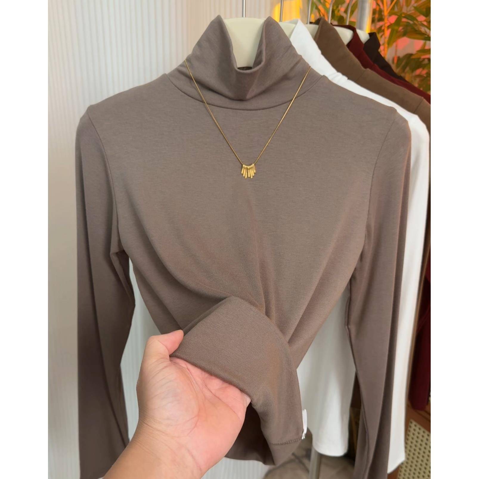 色时尚 堆堆领秋冬季 女2025年韩版 百搭打底衫 简约洋气上1015h 长袖