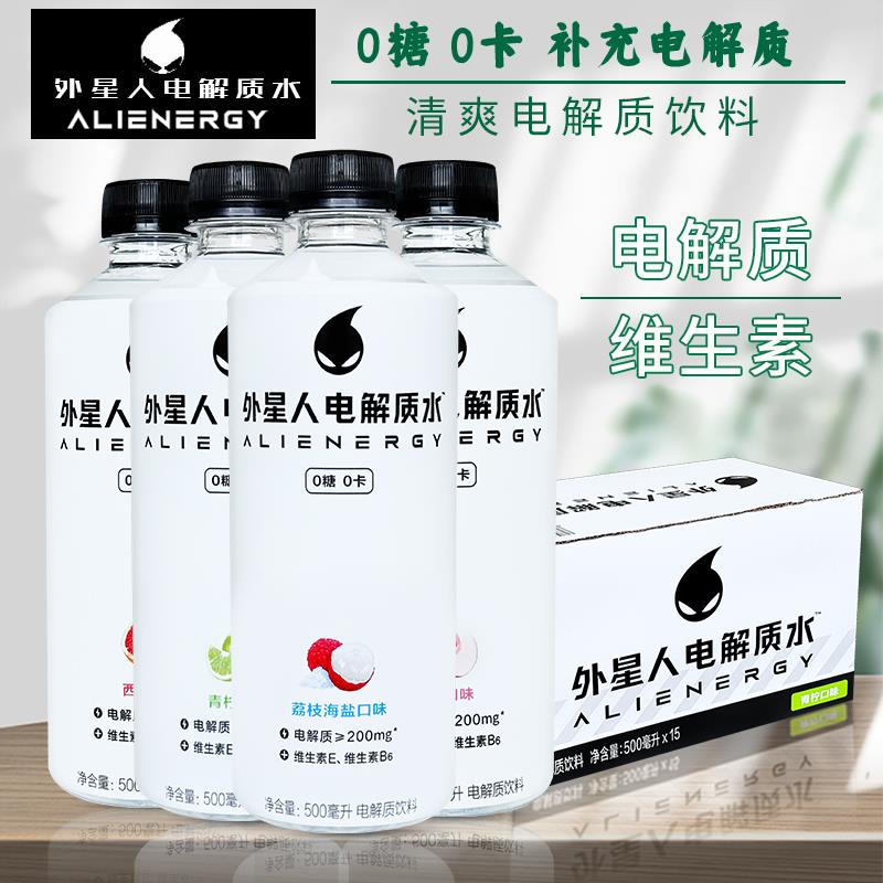 新货外星人电解质水0糖0卡无糖运动健身饮料500ml 15瓶整箱电解质