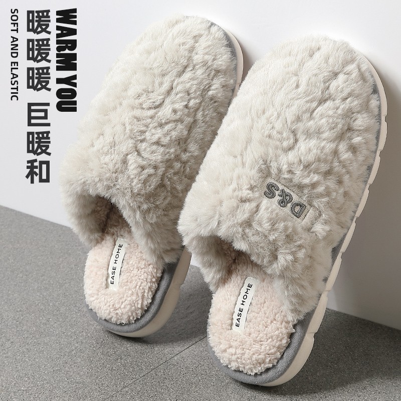 2025新款 秋冬季 室内家居软底防滑家用保暖毛绒情侣棉拖 男士 棉拖鞋
