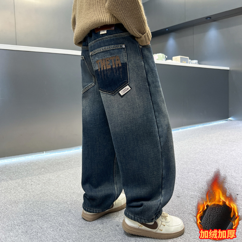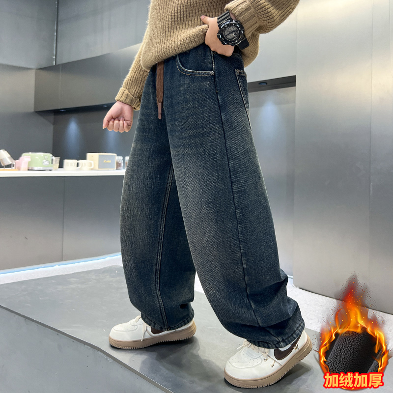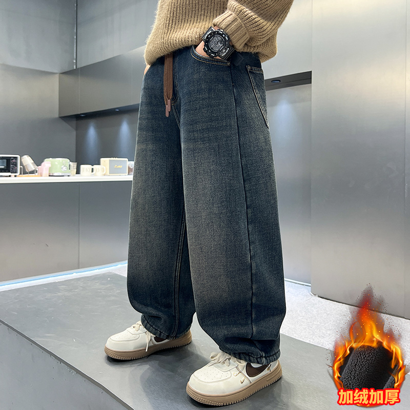 牛仔裤 儿童装 中大童加厚保暖男孩冬装 子秋冬2025新款 潮 男童加绒裤
