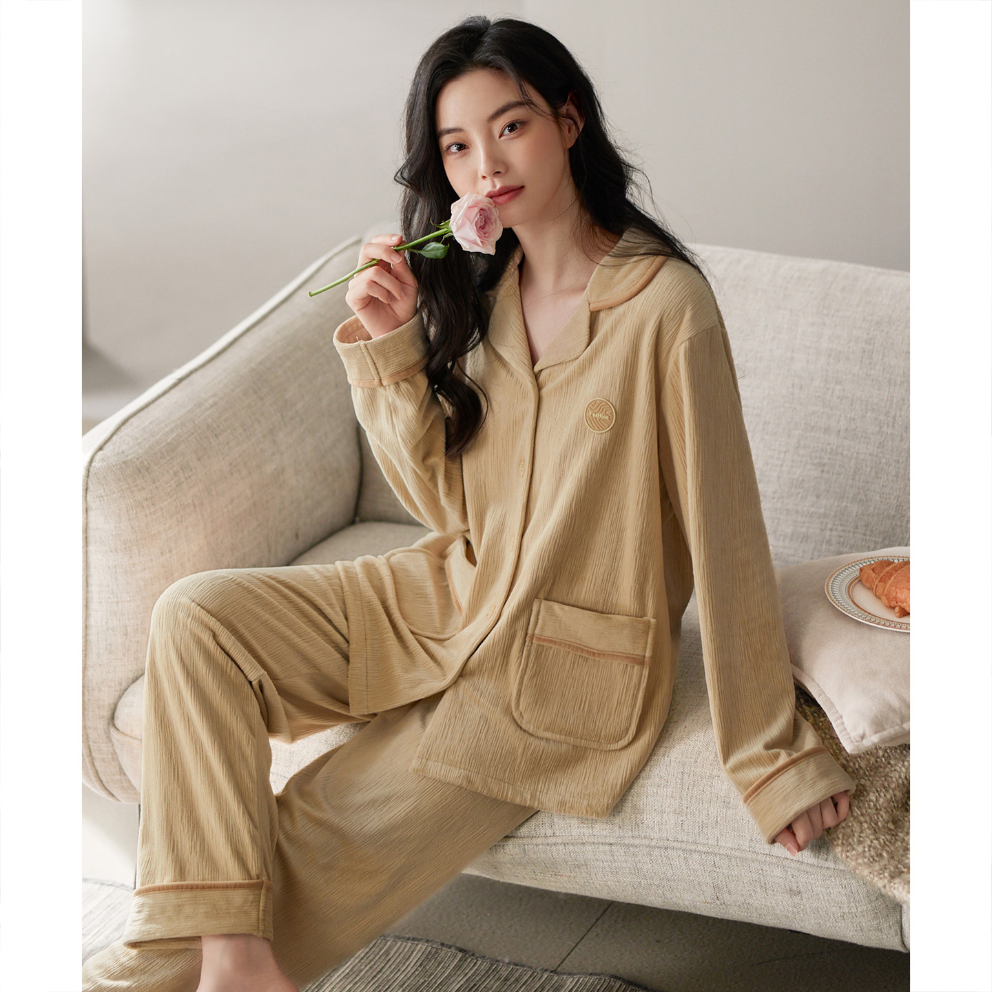 翻领情侣款 法式 舒适秋冬外穿睡衣 开襟家居服套装 ubras云棉长袖