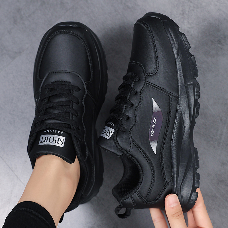 休闲鞋 中老年黑色运动鞋 旅游鞋 子女鞋 防水皮面软底轻便春秋妈妈鞋