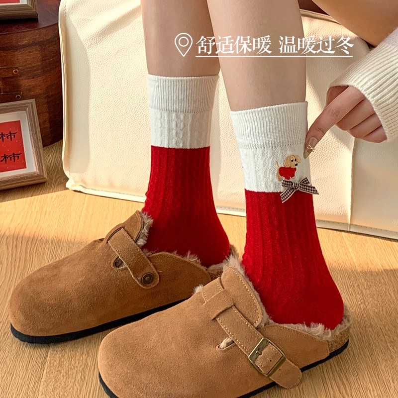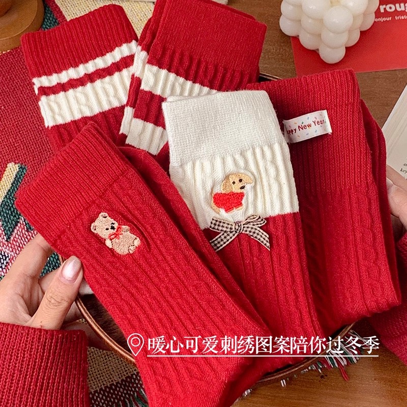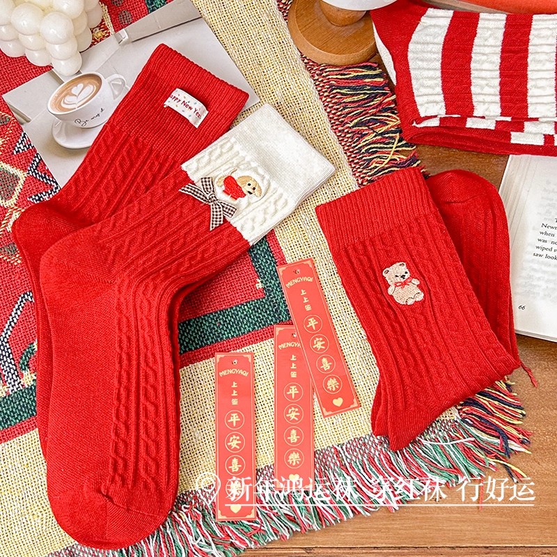本命年红袜子中筒袜春秋季 纯棉女袜防臭马年女士棉袜秋冬新年长袜