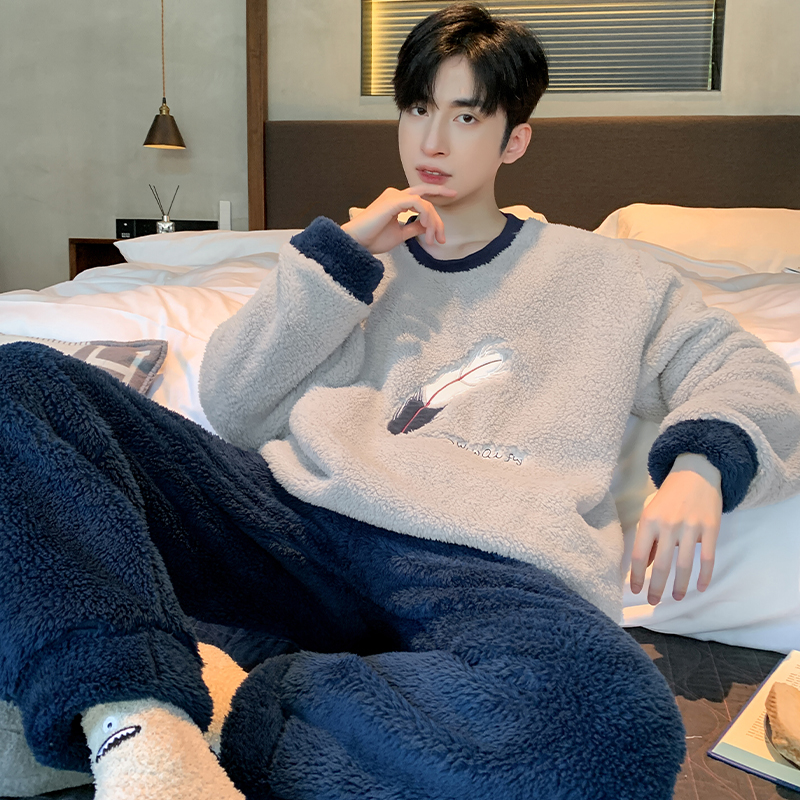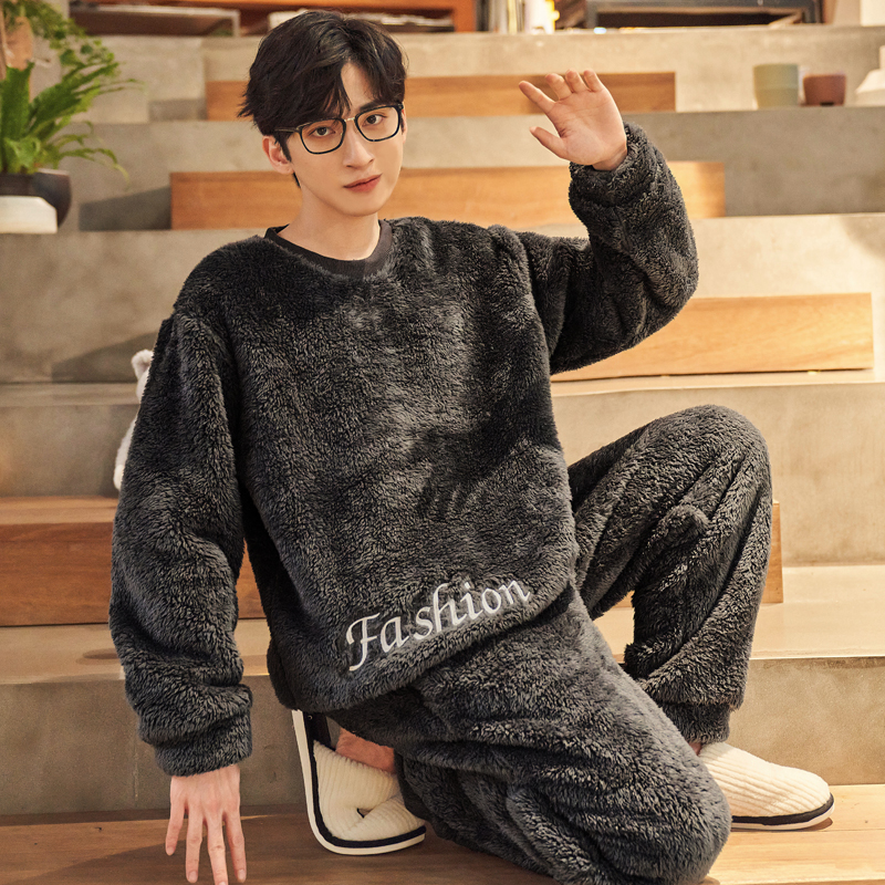休闲加绒法兰绒家居服 冬季 俞兆林秋冬睡衣珊瑚绒男保暖大码 套装
