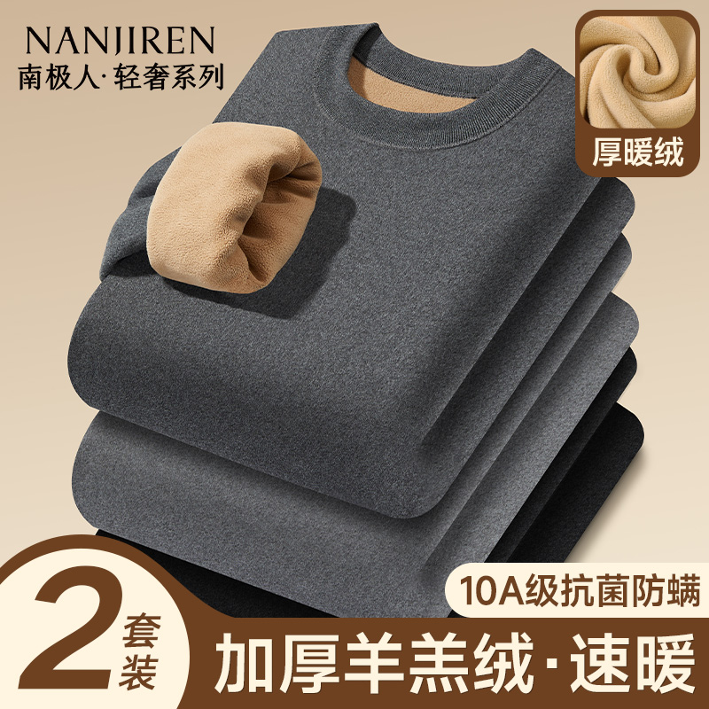 防寒打底内穿秋冬季 南极人加绒加厚保暖内衣男士 男款 套装 秋衣秋裤