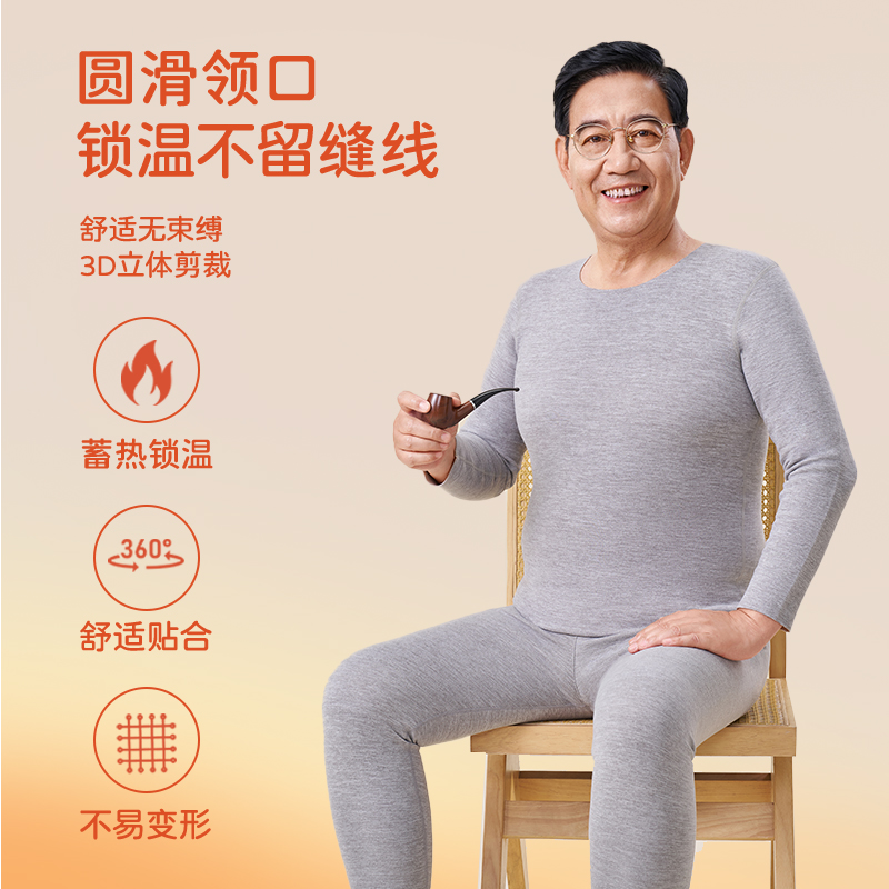 秋冬季 猫人男士 套装 羊绒蚕丝加厚腈纶中老年秋衣秋裤 保暖内衣男款