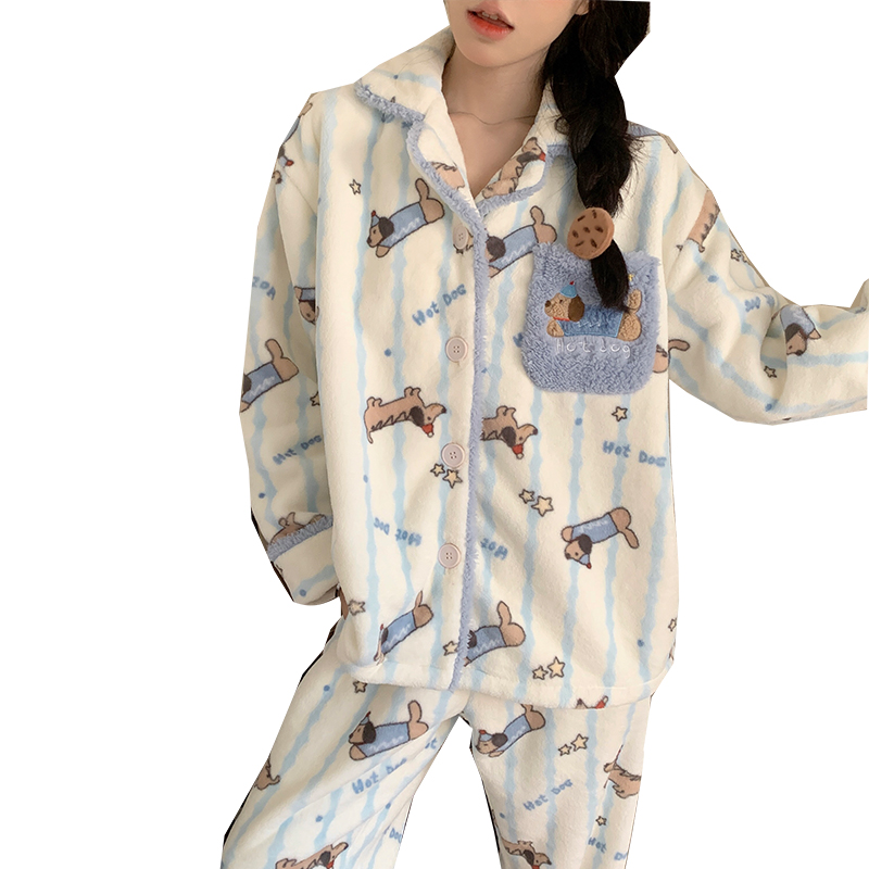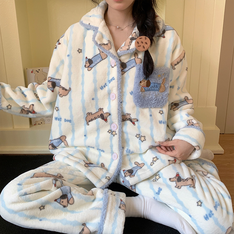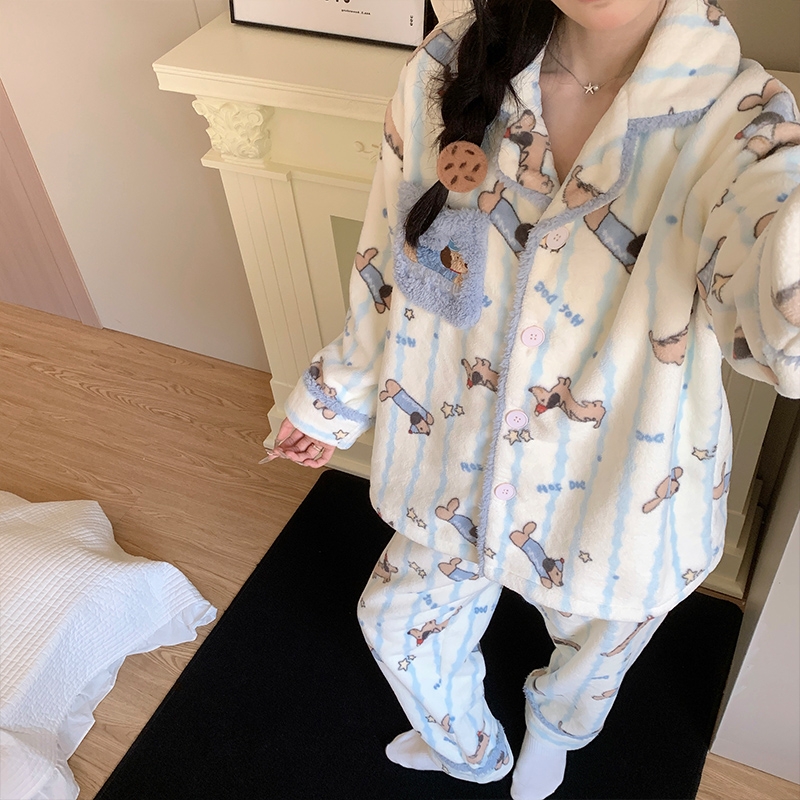 海岛绒可外穿家居服 简约薄款 睡衣女秋冬季 保暖珊瑚绒女士睡衣套装