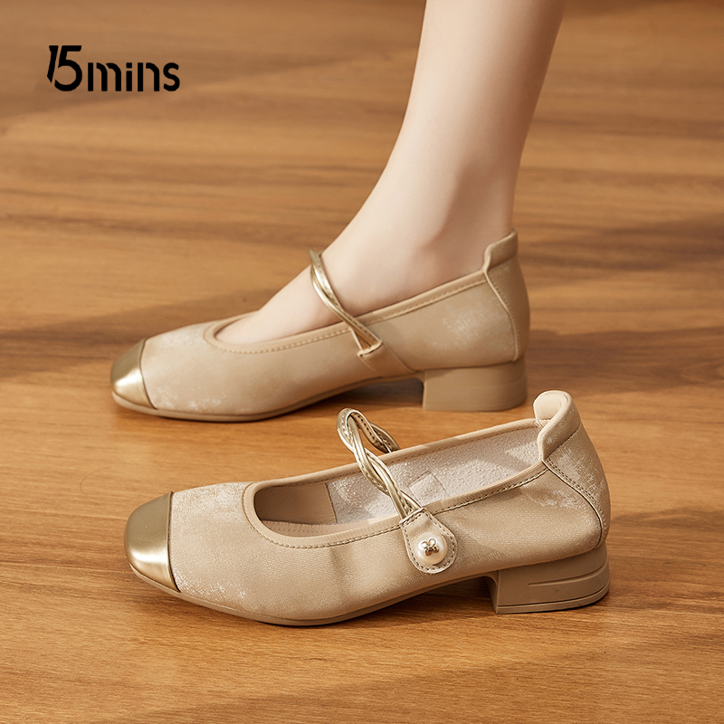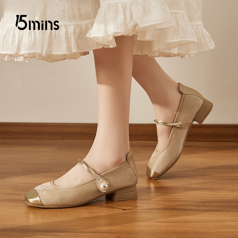 绝美气质通勤平底鞋 小个子内增高裸色方扣浅口单鞋 女2025春夏新款