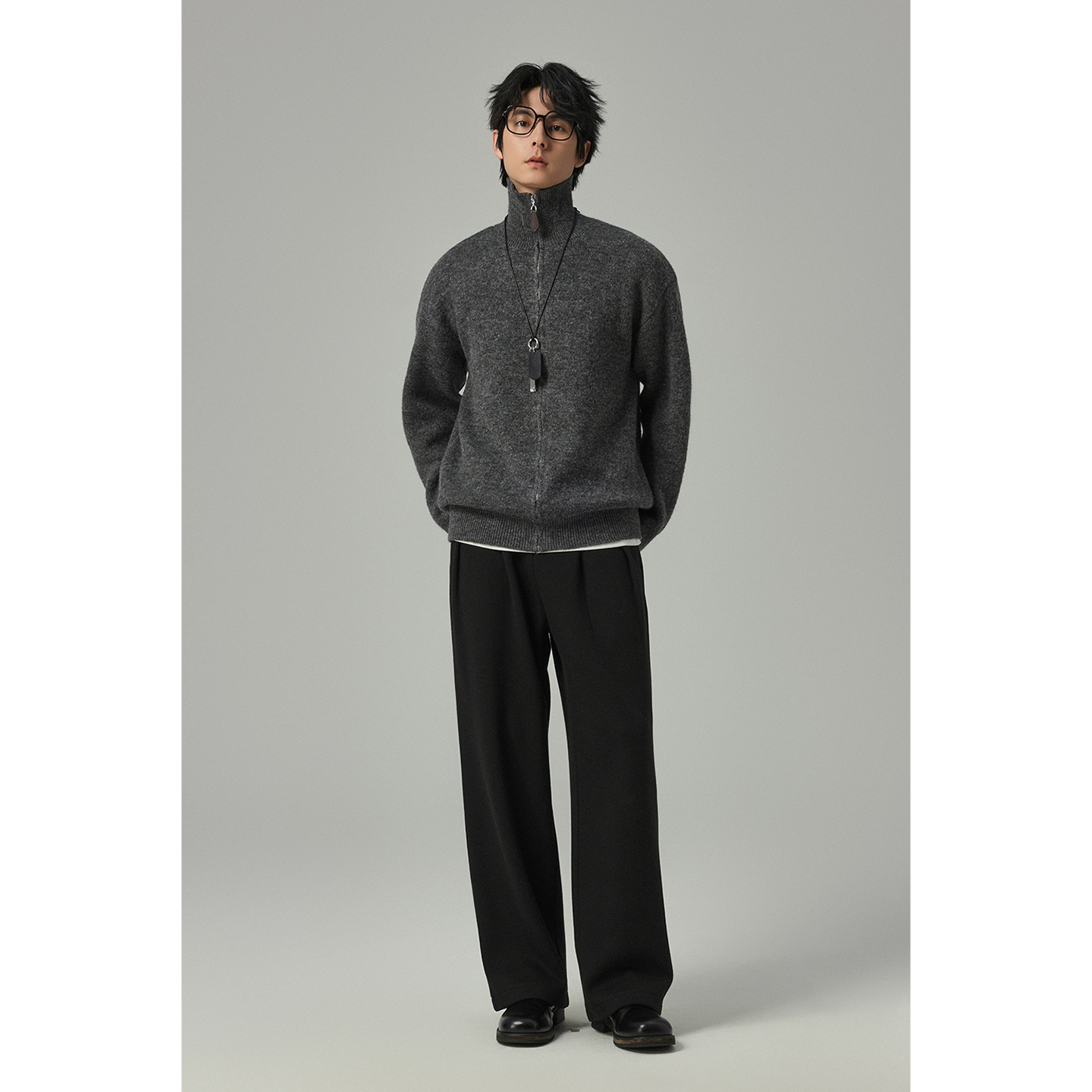 V37重磅立领双开拉链纯色毛衣男秋潮牌cleanfit高级感针织衫 外套
