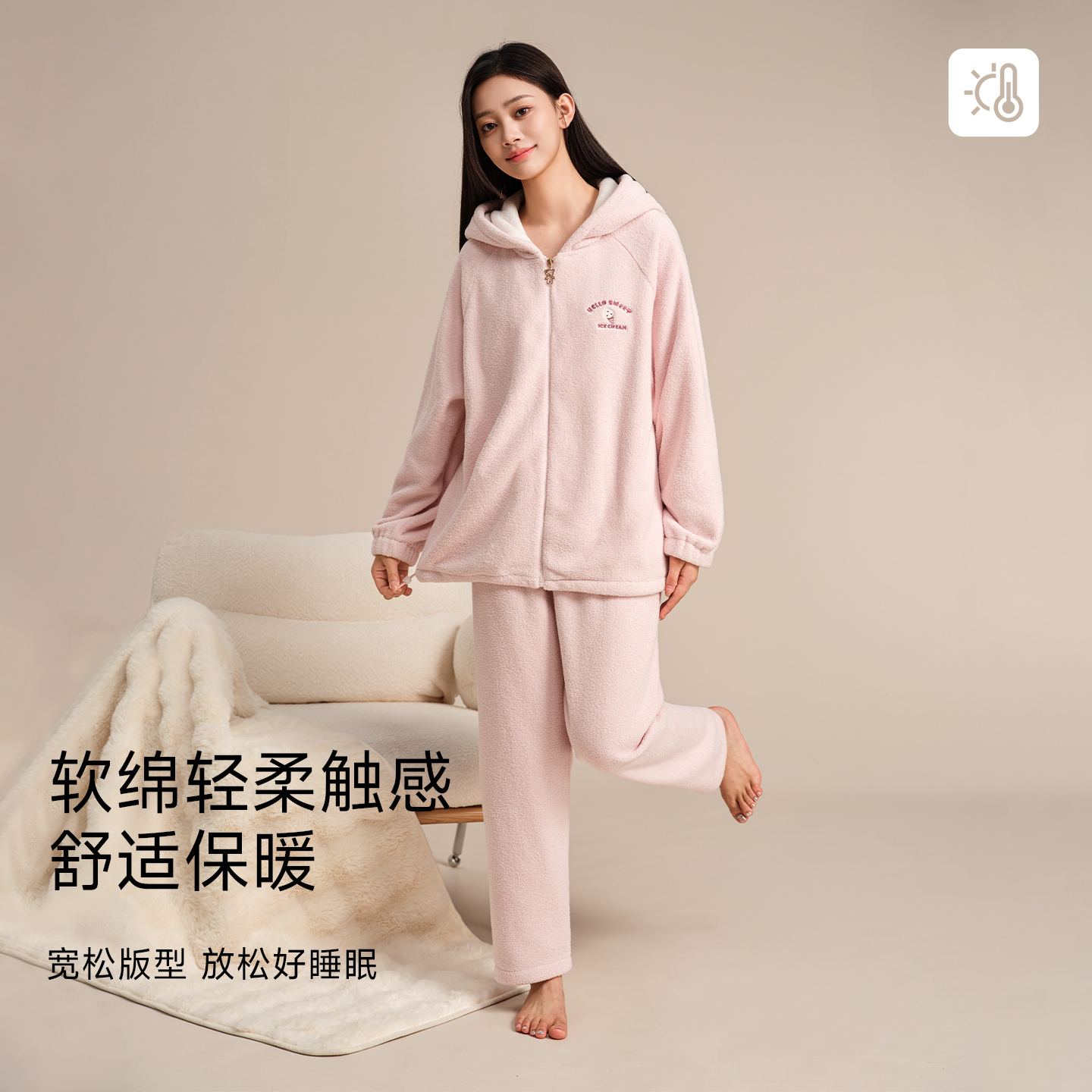 保暖法兰绒家居服套装 南极人珊瑚绒女睡衣加绒加厚冬季 女2025新款