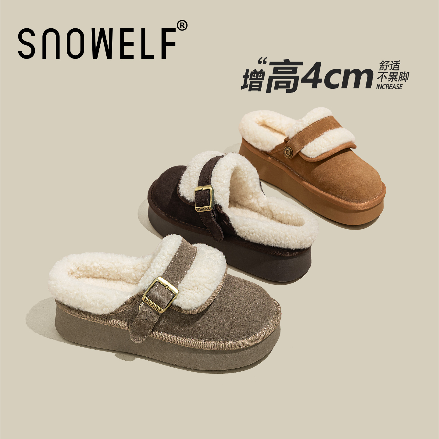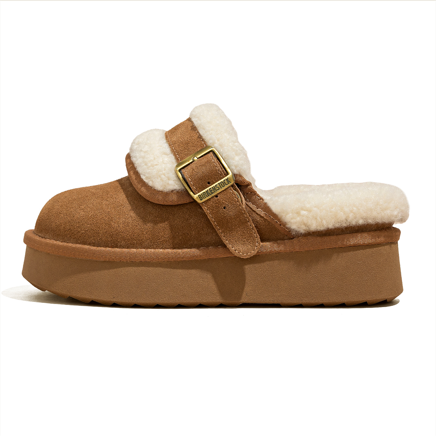 百搭毛毛勃肯拖鞋 保暖加绒加厚棉鞋 冬季 驼色厚底雪地靴女2025新款