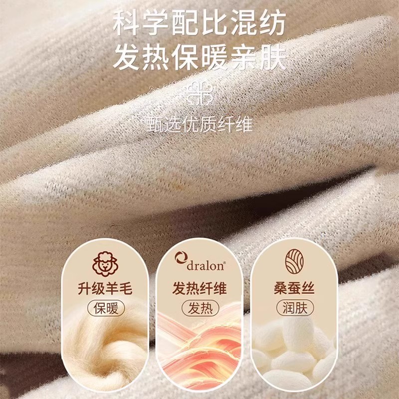 羊绒上衣德绒 秋衣秋裤 蕉羊毛蚕丝女士保暖内衣套装 加绒加厚打底衫