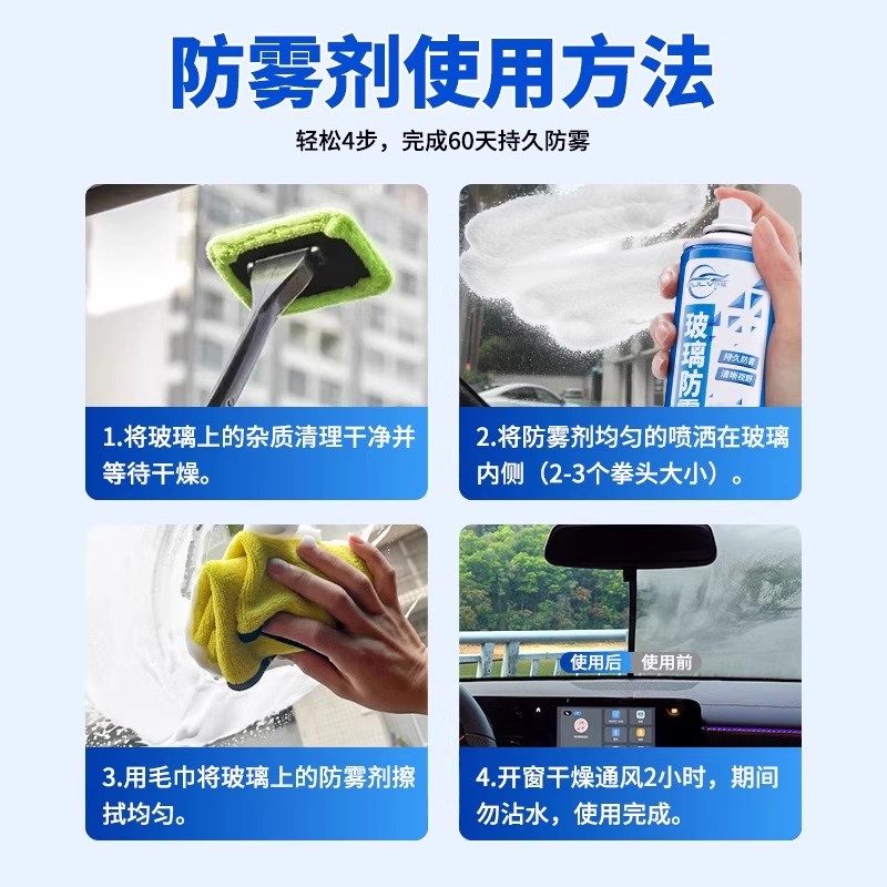 仆旅汽车前挡风玻璃后视镜防雨镀膜强效除雾冬季 车内除冰霜防雾剂