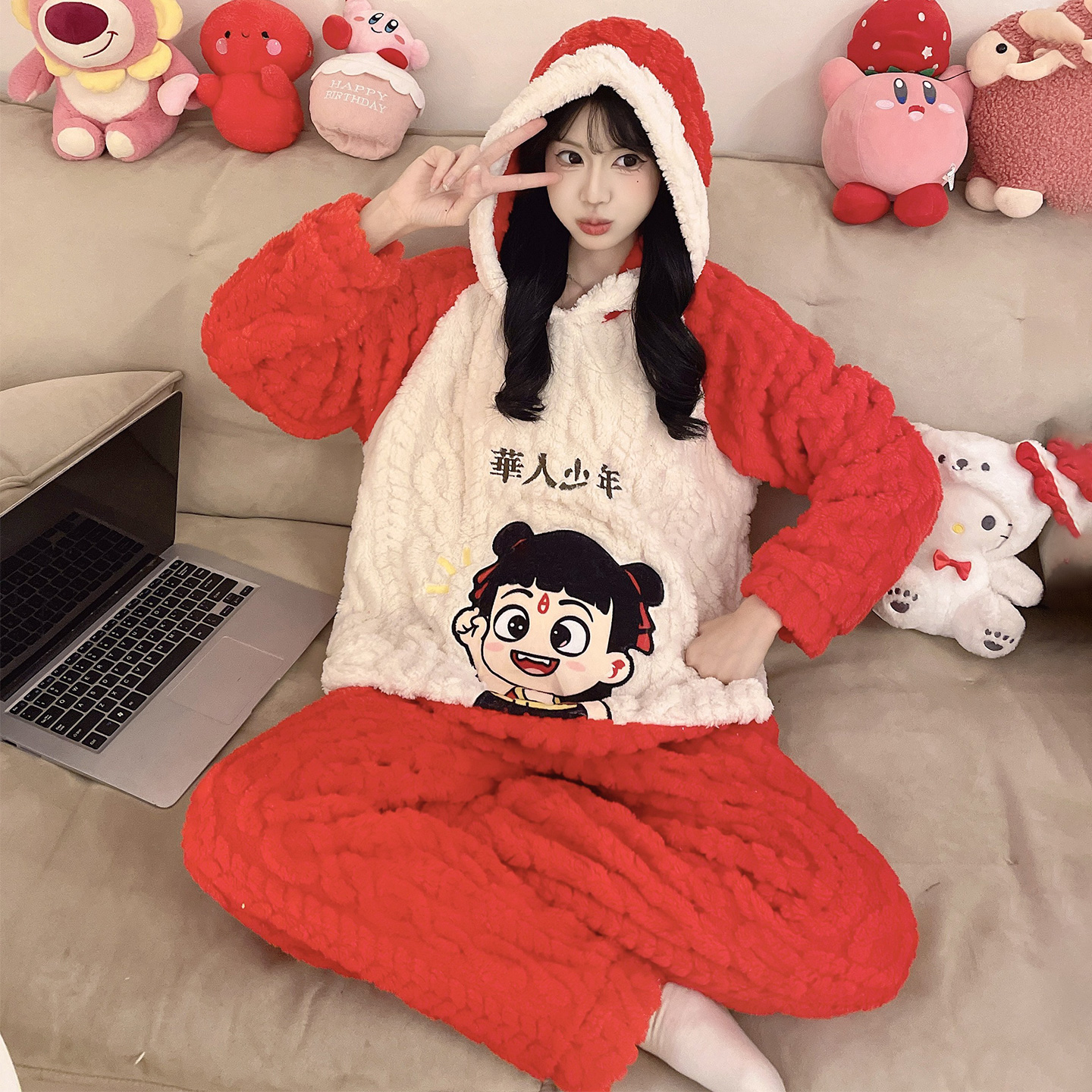 保暖加绒圆领男家居服套装 清仓睡衣女冬IP款 果壳反季 Gukoo