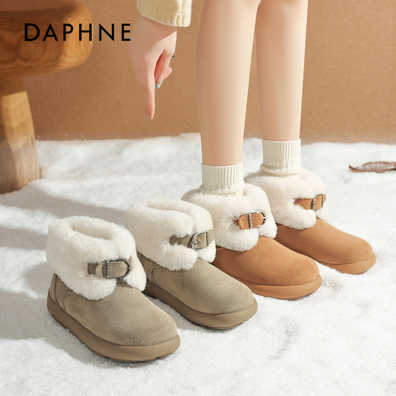 防寒保暖短靴子 翻口可爱毛绒棉鞋 达芙妮加绒雪地靴女2025冬季 新款