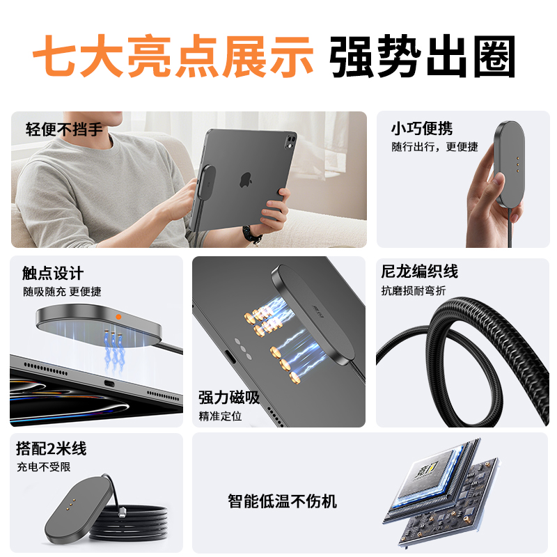 竞闪iPad无线充电器磁吸35W触点轻薄18W自带线游戏平板便携专用
