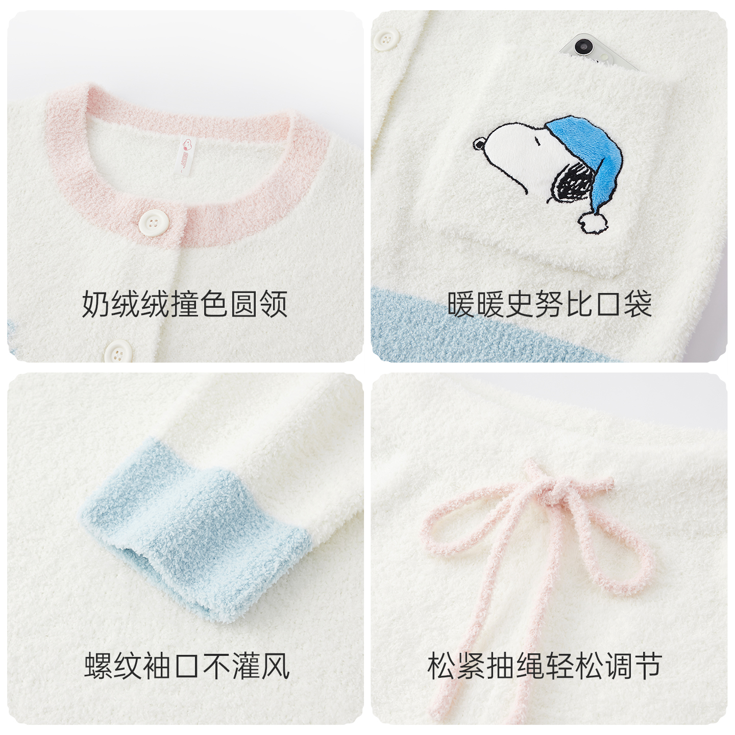 珊瑚绒冬天家居服毛绒 加绒加厚秋冬长袖 史努比半边绒睡衣女款 冬季