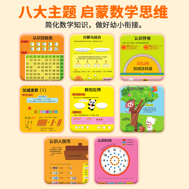 现货速发思维 正品 正版 书籍幼小衔接数学启蒙机关书369岁儿童专项训练早教翻翻书分解与组合时间与人民币互动玩具书硬壳精装