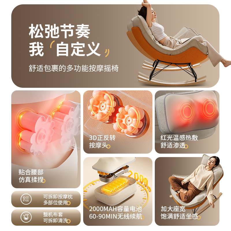 全自动揉捏腰背部按摩神器靠垫沙发懒人摇摇椅躺椅成人可睡觉阳台
