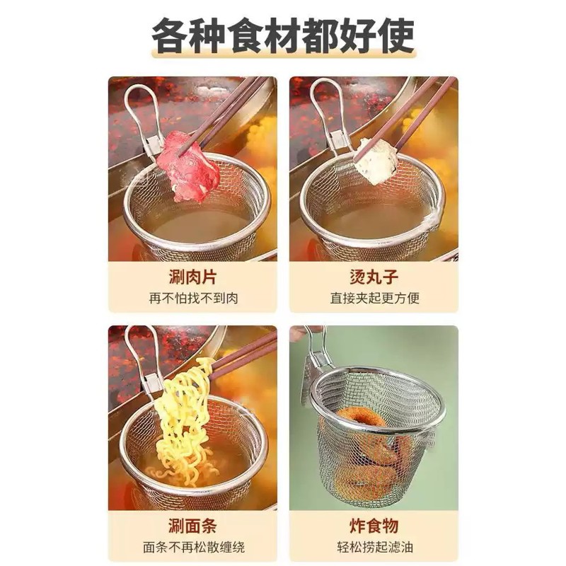 火锅专用漏勺加深304不锈钢漏框煮面网篮涮肉过滤网筛烫脑花容器6