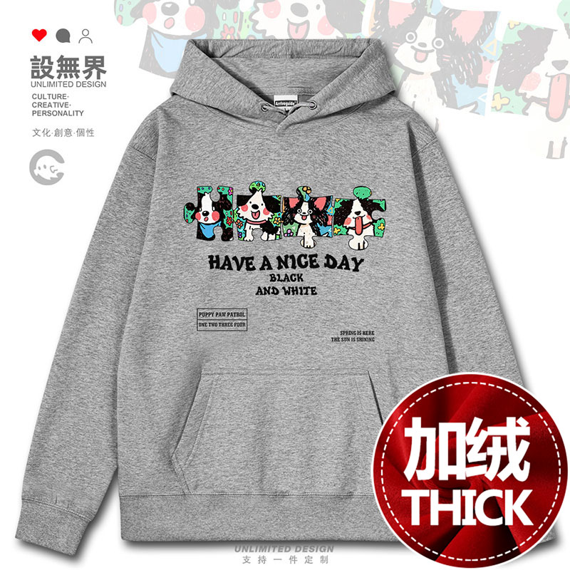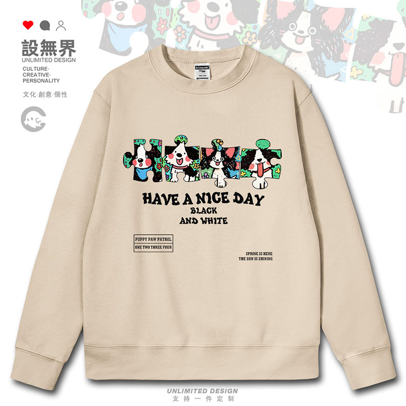 日系春天边牧狗狗发芽计划可爱呆萌拼图连帽卫衣男女0017设 无界