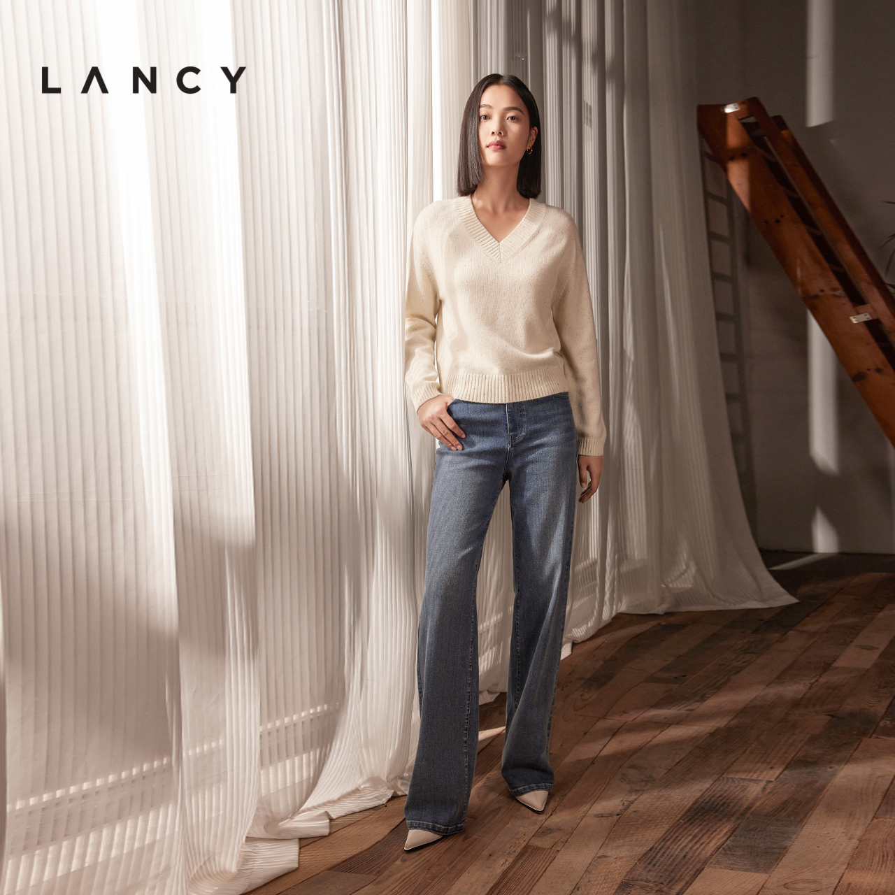 毛针织衫 LANCY V领长袖 新款 女宽松打底外穿毛衣女 朗姿2023秋季
