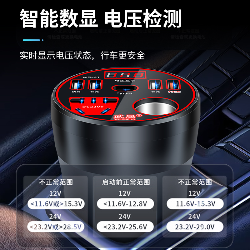 隐藏车载充电器66W 120W超级快充汽车点烟器转换插头一拖三PD快充