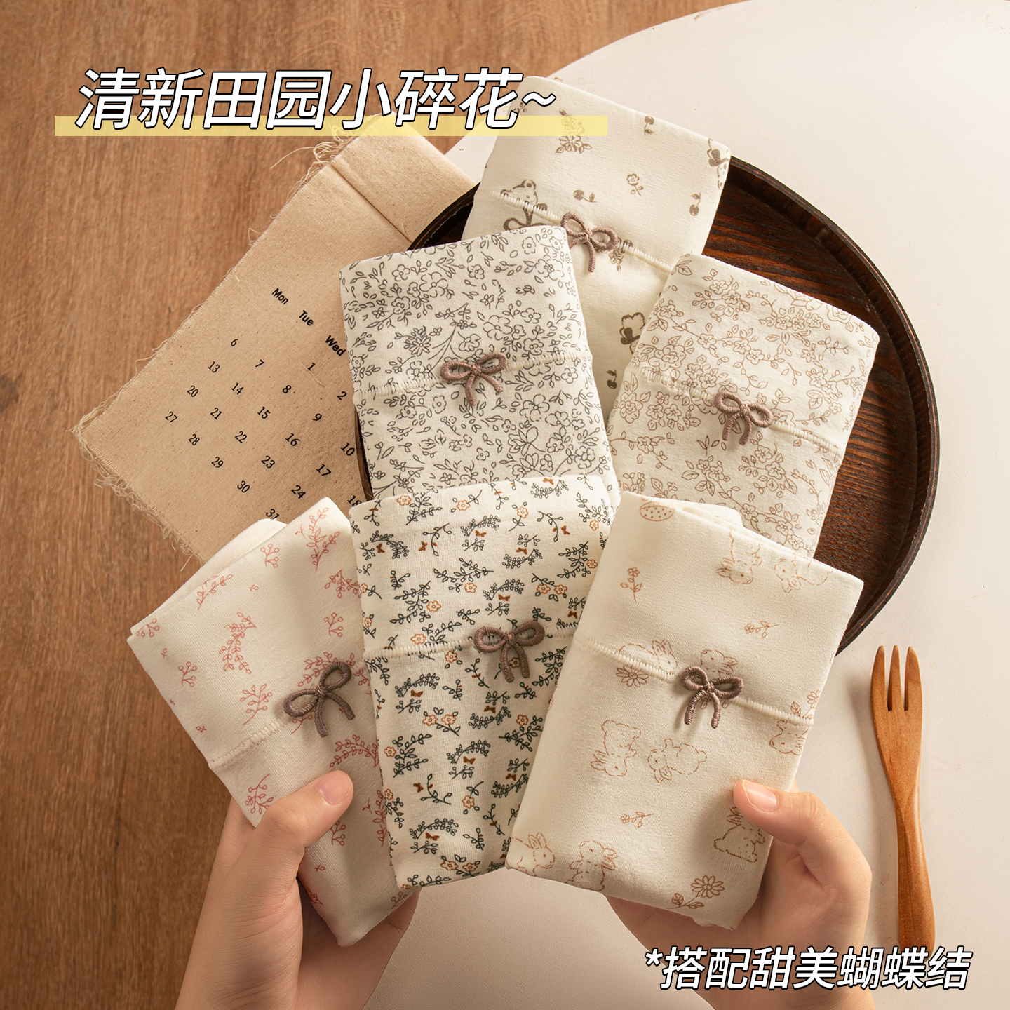 三福女低腰包臀内裤 女495837 少女花边印花柔软透气半平角裤