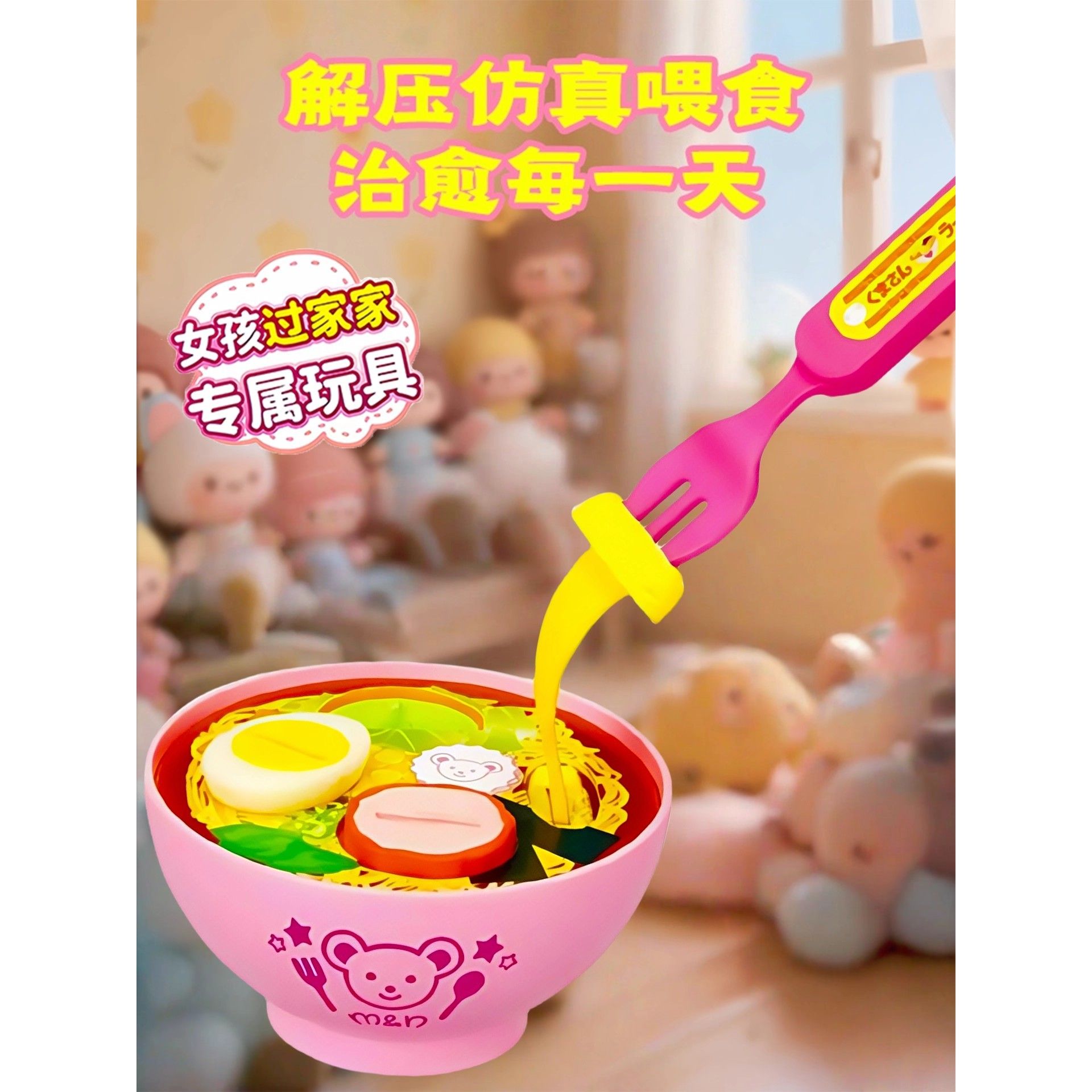 新款 儿童益智玩具拉面喂食可爱布丁喂食器儿童过家家玩具仿真食玩