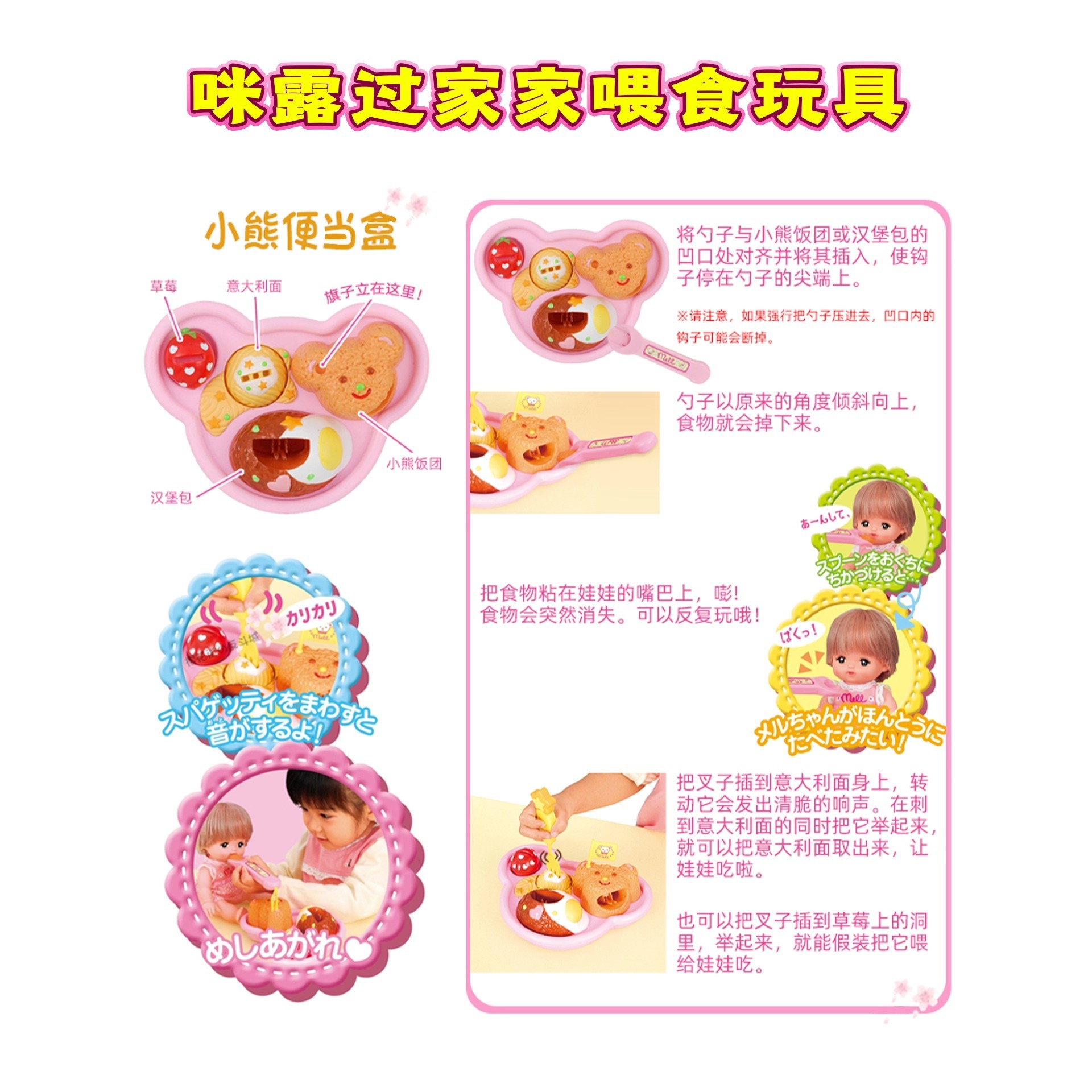 益智小熊餐盘喂食玩具便当盒食玩迷你儿童过家家玩具套装 布丁拉面