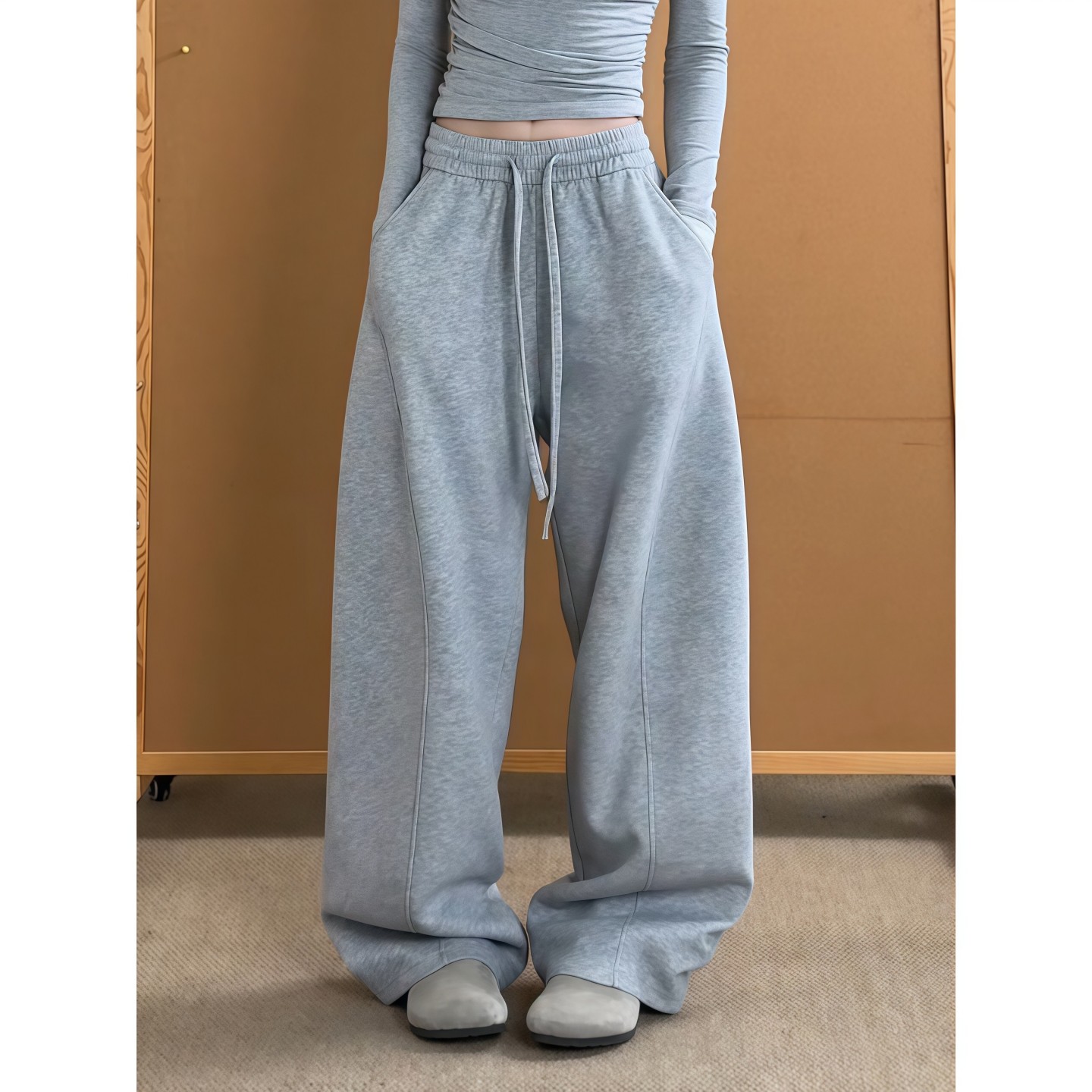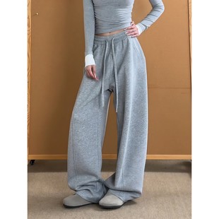 子垂感直筒休闲运动裤 美式 重磅cleanfit阔腿裤 男秋季 斜切弯刀卫裤