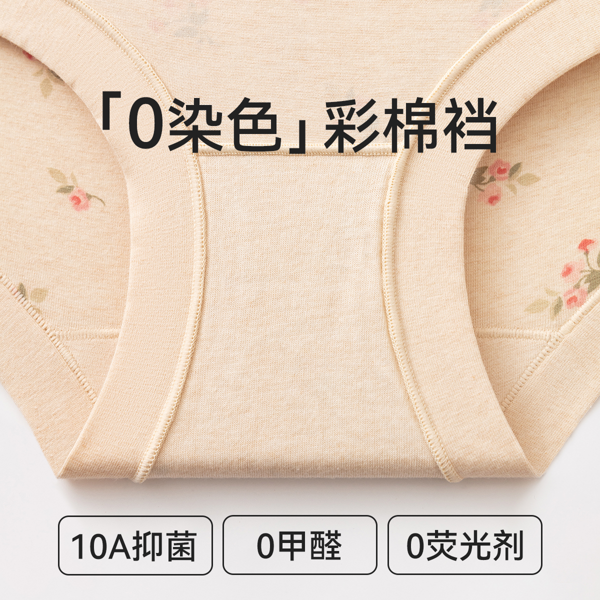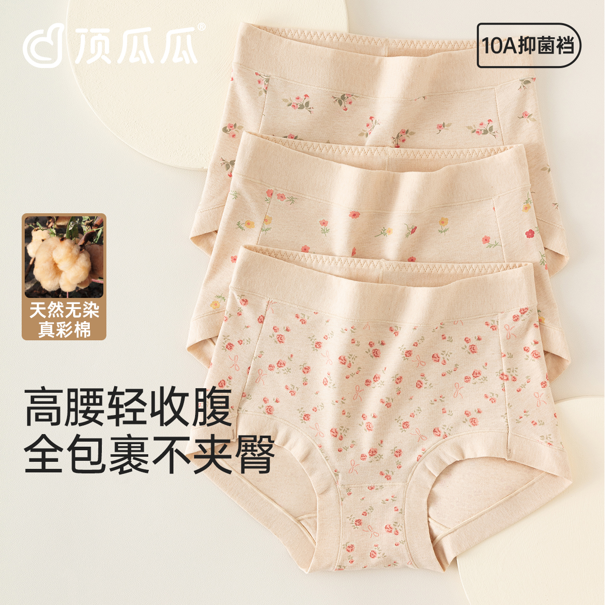 头三条装 顶瓜瓜女士内裤 纯棉抗菌裆中腰无痕彩棉透气舒适三角短裤